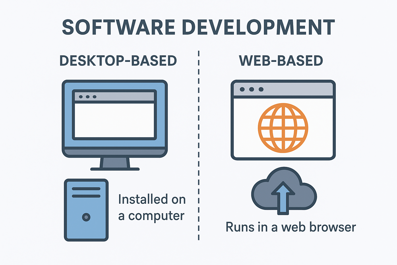 Desktop-based software refers to applications that are installed directly on a user’s computer system—such as Windows, macOS, or Linux. These programs run locally on the device and do not rely on continuous internet connectivity for most of their operations.